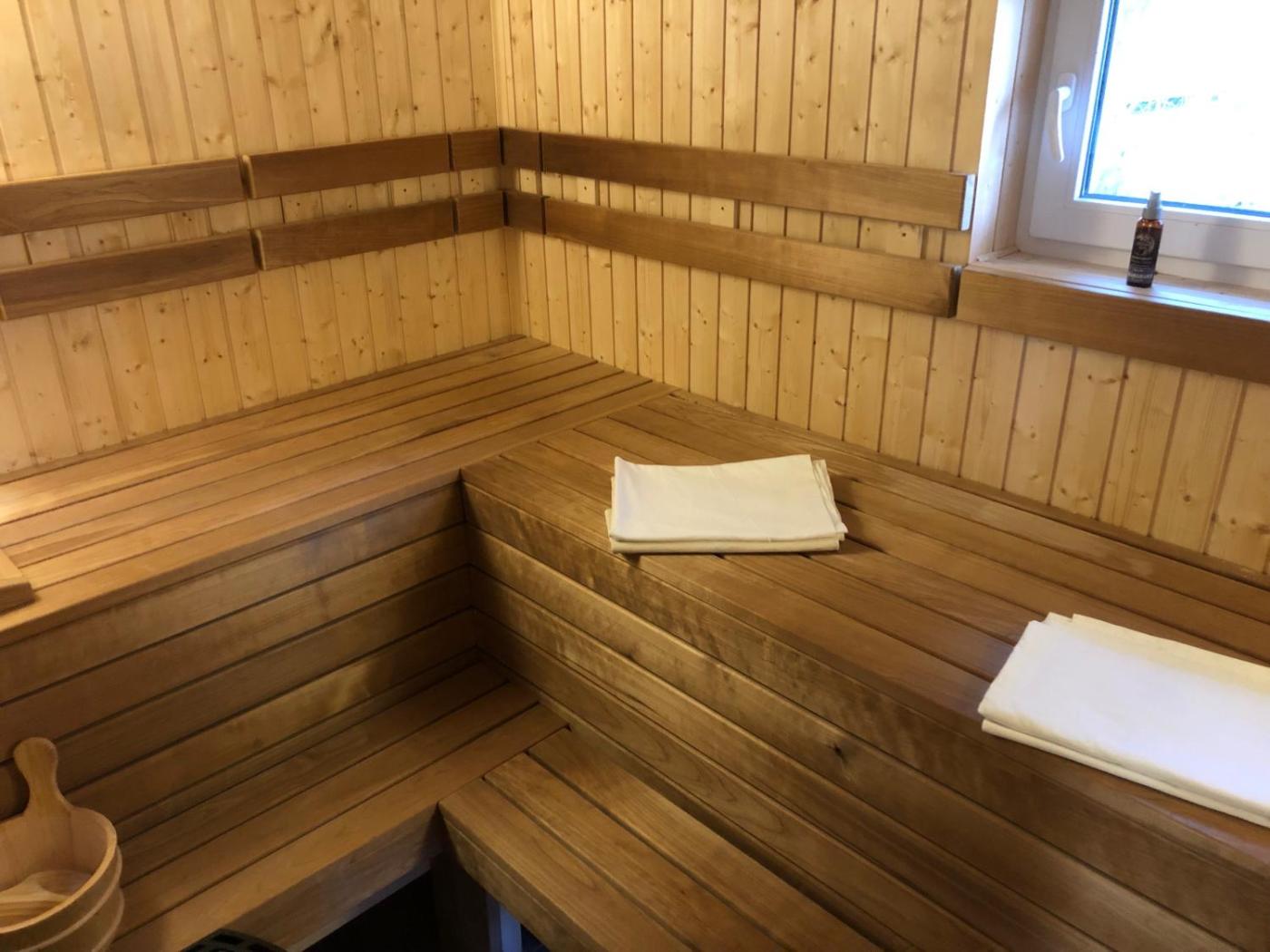 Three-Bedroom Apartment. The private pool and sauna are the standout features of this apartment. The apartments kitchen is available for cooking and storing food. The spacious apartment offers a washing machine, a private entrance, a tea and coffee maker, a flat-screen TV with streaming services, as well as garden views. The unit has 4 beds.
